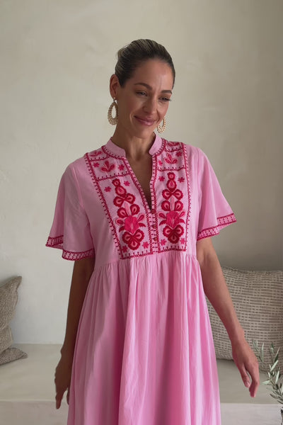 Elodie Flutter Sleeve Smock Dress in Rosita