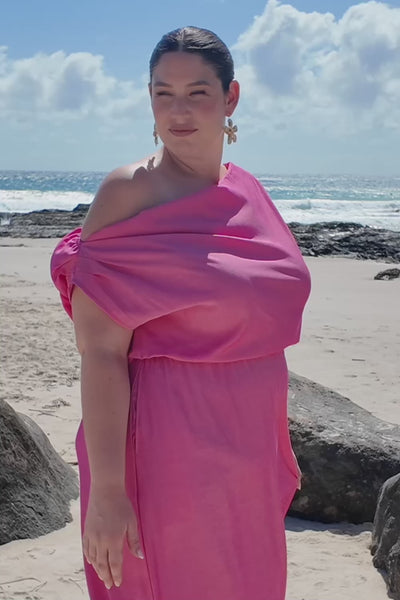 Alice Drop Shoulder Dress in Flamingo