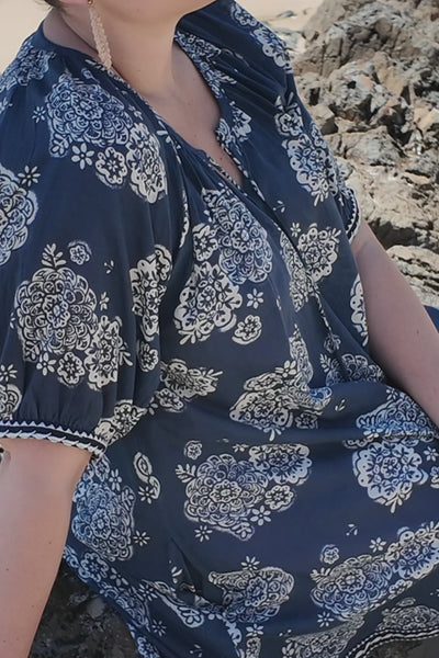 Via Short Billow Dress in Moroccan Belle Navy
