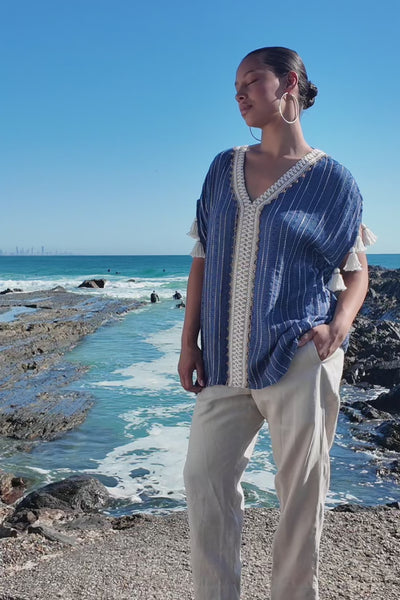 I just purchased this top in store. It is simply beautiful on. The material is delicate and with lovely embroidery detail. It will look stunning over jeans or white/blue/ cream linen pants. I feel like I have just walked out of the 70s but with “oomph”. I can’t wait to wear it out. They had a petite OS which looked really nice on. I am normally a “L”. I just didn’t trust the fact I was in a petite so I went for the standard OS. 😂 (FYI/ both looked great on, the petite was slightly more fitted). No photos yet but trust the model picture… it is lovely.