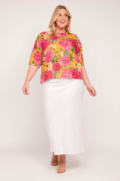 Effortless elegance meets playful charm in the Audrey Blouse in Dreaming Dahlias. Featuring a classic jewel neckline and billowing long sleeves with elastic cuffs, this blouse offers a refined yet relaxed silhouette.