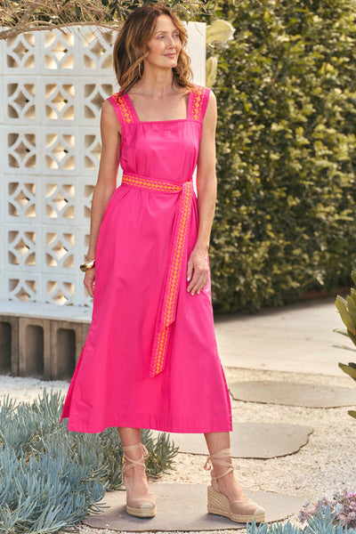 The Bec Polin Sun Dress in Fuchsia pairs relaxed elegance with practical details, with pockets, side splits and a detachable waist tie belt. Crafted from lightweight cotton, it’s a bold-luxe look designed for the modern Australian woman.