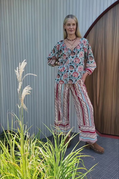 The Breezy Pant in Riviera is all about relaxed comfort with a playful pop of print, featuring an easy wide leg and adjustable drawstring waist. Crafted from 100% cotton, they’re light, breathable and made for warm days that call for effortless style.