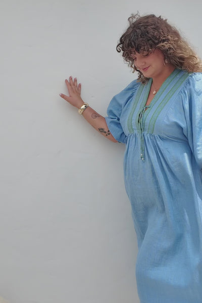 A crowd favourite returns in a stunning new Seabourne colourway. Crafted from 100% linen, the Cairo Boho Dress captures relaxed sophistication with its flowing silhouette, statement V-neckline, and soft balloon sleeves. Finished with contrasting green trim for a beautiful coastal touch, this timeless design moves effortlessly from day to night with undeniable ease and charm.