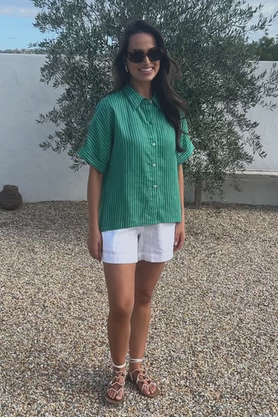 Made from 100% linen, the Carmen Shirt is the perfect choice for shirt lovers this summer. Featuring a relaxed fit with a classic collar and short sleeves, it offers easy styling and all-day comfort. The fresh green print adds a lively touch, pairing beautifully with our denim shorts for casual days or linen pants for a more polished look. A timeless Adrift staple reimagined for the season.
