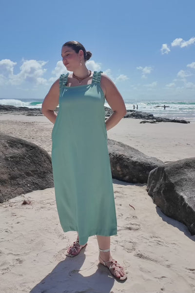 The Claire Frill Dress in Tosca is crafted from soft 100% Rayon, featuring a relaxed A line silhouette and delicate frill details that add subtle charm. An Adrift favourite for a reason, this bra friendly style is ideal for hot summer days when comfort is key.