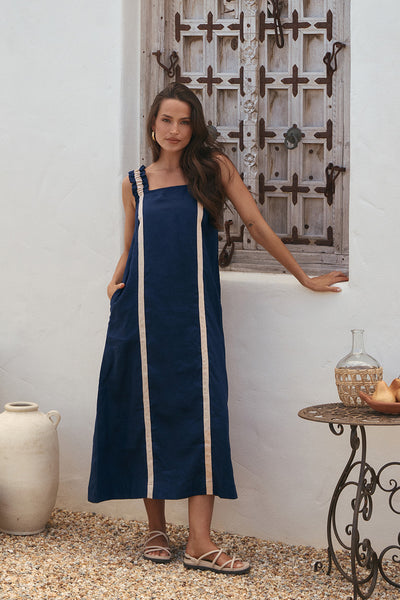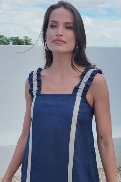 Claire Linen Frill Sun Dress in Natural Splice