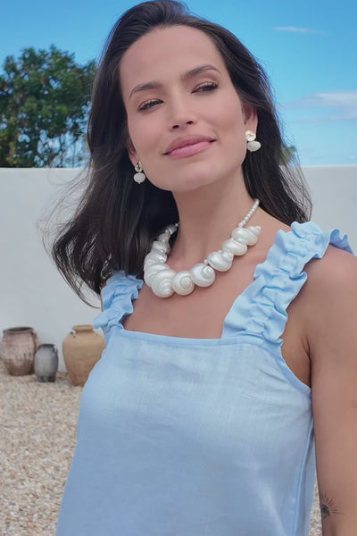 Effortlessly feminine and endlessly wearable, the Claire Sun Dress is your new summer favourite. Crafted from beautiful soft linen, it’s designed with wide frilled straps, a relaxed A-line silhouette and handy side pockets. The powder blue hue feels cool and coastal, perfect for warm days and sunset strolls alike.