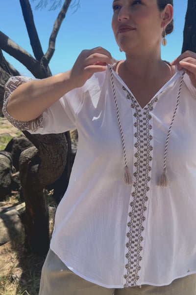 The Danny Embroidered Top is a true highlight, with intricate embroidery set against a white base that feels fresh and refined. Exclusively designed by Adrift and crafted from 100% cotton, it’s an elevated everyday piece where luxe detailing does all the talking.
