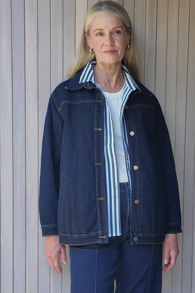 The Denim Shacket is a must have layering piece, designed with a relaxed fit that falls to the hips and finished with subtle stripe lining for a refined touch. Crafted from stretch denim that moves with you rather than restricts, it layers perfectly through the cooler days and beyond, designed with love in Brisbane.