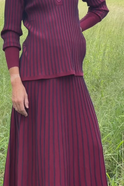 The Knitted A Line Skirt brings together a flattering, easy shape with bold cherry red and navy striping for a striking yet wearable finish. Made from a comfortable stretch knit, it moves naturally with the body while holding its shape, perfect for pairing with the matching jumper or simple everyday staples.