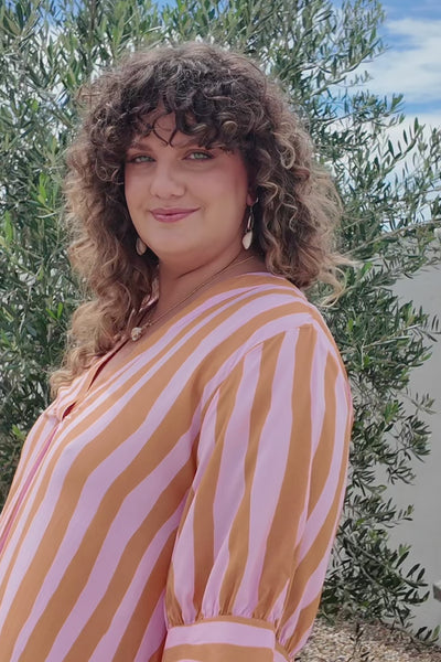 Fun, fresh, and full of colour, the Kora Puff Sleeve Dress in Coral Spring is the perfect throw-on for warm summer days. Crafted from 100% rayon, it features soft puff sleeves, a relaxed fit, and a flattering V-neckline. The coral and pink stripe print adds a playful touch, bringing easy charm and comfort to your everyday wardrobe.
