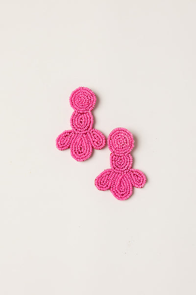 Lotus Beaded Earrings in Hot Pink