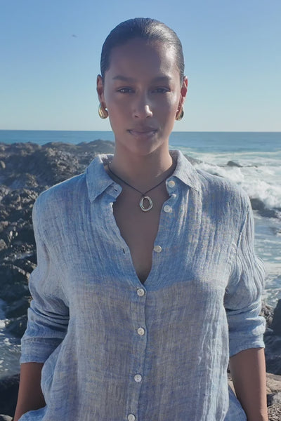 Natalia Linen Oversized Shirt in Sky Blue Tide