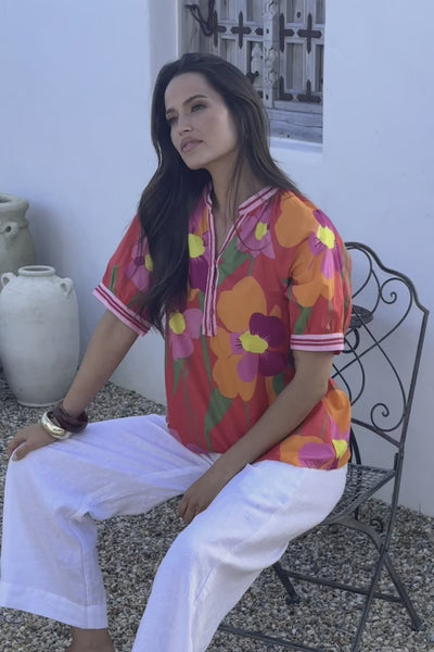 Robin Round Neck Blouse in Flamenco