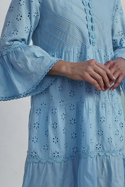 Bask in feminine elegance with the Scout Daisy Embroidered Short Dress in Pale Blue, showcasing a flattering notched V-neckline, playful frill cuffs, and handy pockets, all in beautiful 100% cotton broderie. It’s the perfect blend of comfort and romantic style for Australian summers.