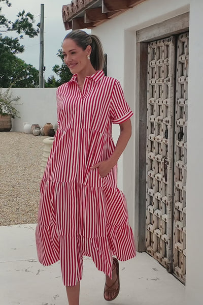 Winslow Button-Through Dress in Red Stripe
